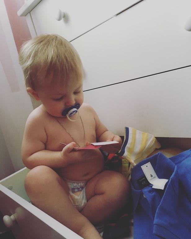 Был период, когда он начал вставать и ходить, когда ничем другим, как лазить по шкафам и брать все, до чего может долезь, ему ничего делать не хотелось. Никакие другие занятия его не привлекали. Сейчас начал сам просить поиграть, позаниматься с "умницей". Очень любит смотреть tiny love. Вообще после года он резко превратился из малыша в мальчишку . Такой у нас любопытный, хитрый, сообразительный мальчишка. У него куча сомнительных навыков: включать/выключать телевизор и переключать каналы, делать фото на телефоне, включать/выключать свет . Все повторяет за нами, все. Я тут мою пол, а делаю я это часто-2-3 раза в день,Лука берет губку и начинает делать тоже самое. Знает, что ключ надо вставить в дверь, но пока не достаёт .