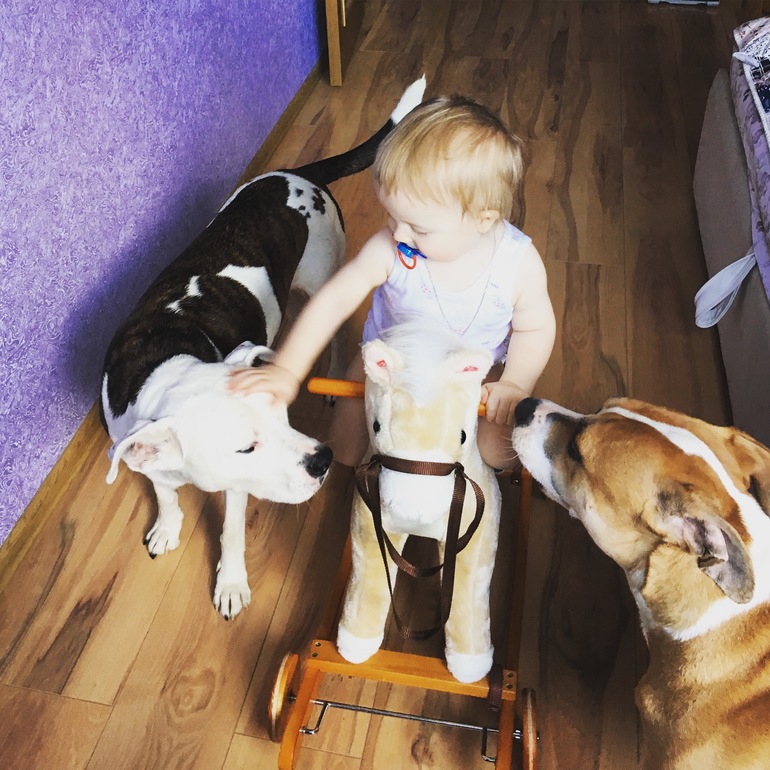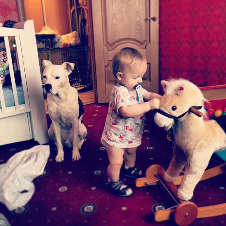 Крестная подарила лошадку.Лу обожает её, любит, чтобы его катали по квартире или сам катает ее или просто жалеет.