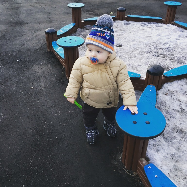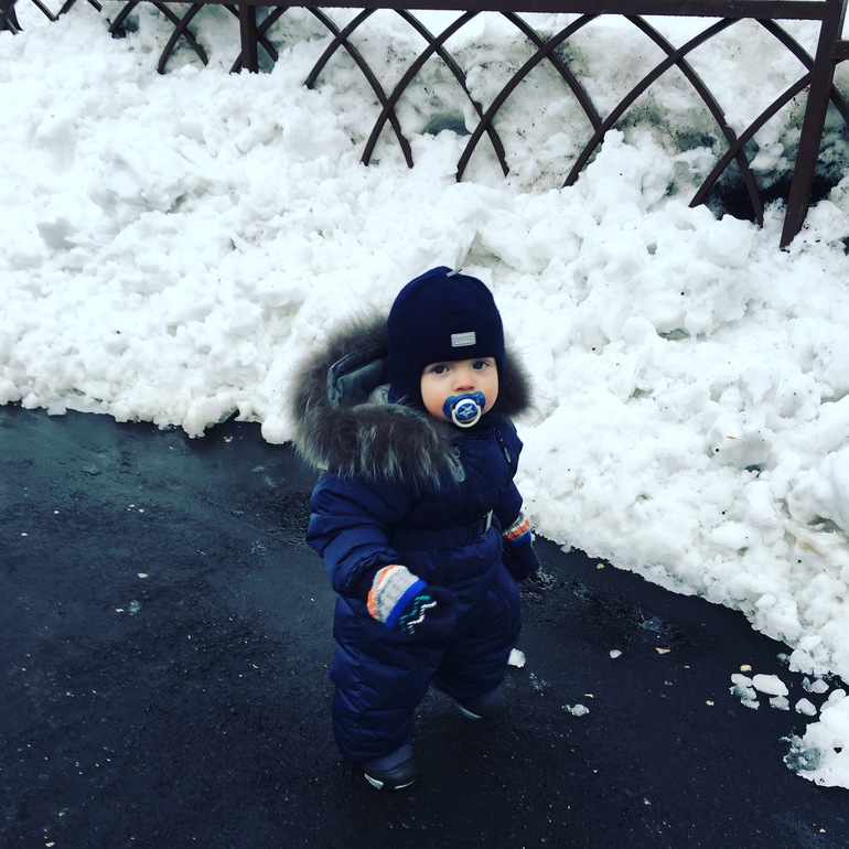 Лука пошёл без опоры в 9,5 месяцев, поэтому с января на улицы , если он не спит, то гуляет. Сидеть в коляске не хочет.