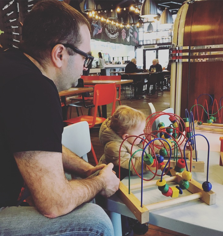 Лука вообще очень любит куда-нибудь ходить и менять обстановку. На новогодних каникулах мы ездили в гости, где Лу себя спокойно и уверенно вёл, общался с незнакомыми взрослыми и детьми старше него.