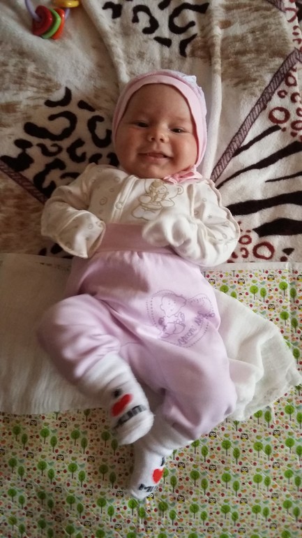 , Веточке тьфу-тьфу-тьфу тоже нравится, высыпаний нет. Только иногда появляются белые прыщички и тут же проходят, читала, что это у всех младенцев. Ножками мы перестали трясти, слава Богу, но губка еще трясется и заметила тогда, когда с кровати поднимаю ее на руки. Недавно Веточка стала смеятся в голос, чуть не описалась я от радости такой, такой заливистый хохот и рот до ушей!!!