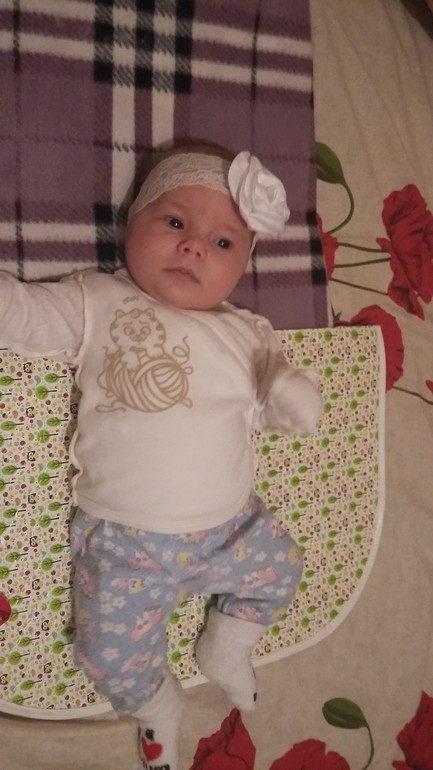 Какашничаем три раза в день-утром, днем и вечером.Гуляем один раз в день от1-3 часов в зависимости от погоды. Даже уже с открытыми глазками. Когда плачет, уже появились слезки и личико такое обидное делает, аж душу щимет. Ну вот, пожалуй все, что хотела написать. Любим нашу сладкую конфетку безумно! И очень рады, что она у нас есть, спасибо Богу за такой подарок!