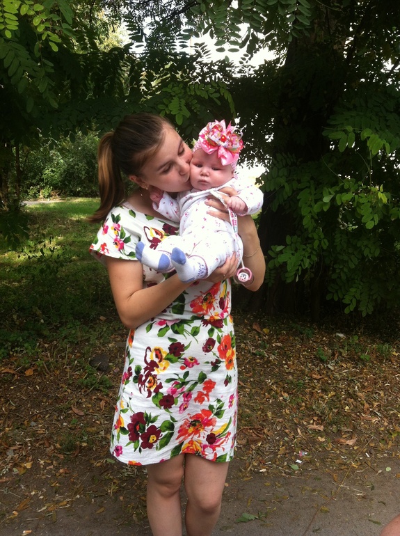 это было воскресенье, а в субботу мы с мужем впервые вырвались "в люди", на свадьбу к друзьям. Анюта была с бабушками, причем с обеими, и, к стати, вела себя очень хорошо, я ожидала худшего. Я всего лишь 2 раза приезжала её кормить и дальше уезжали танцевать на свадьбе. Помню сижу за столом, пить нельзя, 70% кушать нельзя, и все время смотрю на телефон, муж аж нервничал, в итоге забрал его. Короче, первый выход в роли родителей удался. Получилось, что я рассказала за день до этой фотки, но в день фото мы просто гуляли, ловили последние лучики ьеплого солнышка, а после обеда уехали в Киев... О Боги, как я могла забыть!!!! Об этом дне очень даже есть что рассказать!