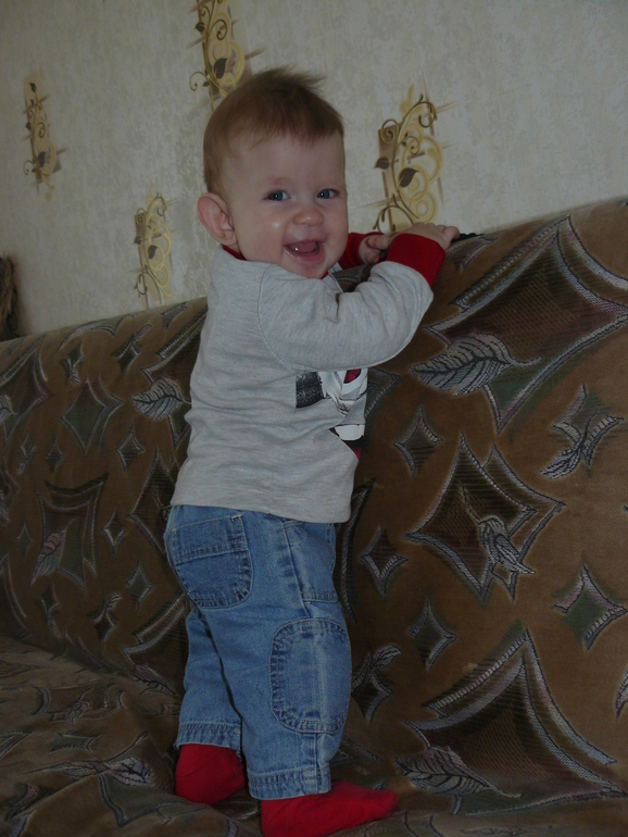 Умелки особо так не прибавились. Ползает лениво, в основном попой вверх, сидит. А самое любимое у нас это стояние и ходьба, прям аж пританцовывает, так ему весело… а мне как,постоянно с ним так ходить)Любит машинки и воздушные шарики, прям взахлеб смеется, когда с ним играет! А, еще любит целоваться! Обнимаешь его, а он прислоняется открытым ротик к щеке и причмокивается, так клево и так мокро