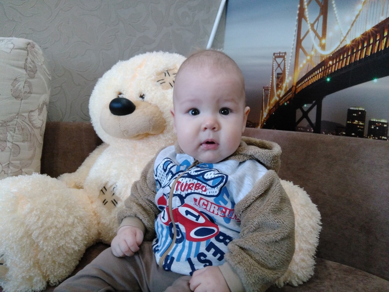Что мы умеем. Ну умеем уже самостоятельно вставать в манеже, схватываясь за кольца. Стоит правда не устойчиво, болтается, и совсем не долго, несколько секунд. Также наконец-то встали на четвереньки, тоже на несколько секундочек, а потом падаем на пузо. Не ползаем, соответственно.Сидим уверенно, но сами с положения «лежа» не садимся. Водили к ортопеду, сделали повторное узи тазобедренных суставов, все ок! Но разводку ножек сказал делать до года. Также сказал сделать рентген шеи (через рот) капец зачем? Ну, типо у вас же была проблема с шеей. Ну она же была, сейчас все хорошо, крутит во все стороны. Не понимаю, и думаем делать или нет. Уж не хочется, чтобы сыночку в рот всякую штуку пихали.