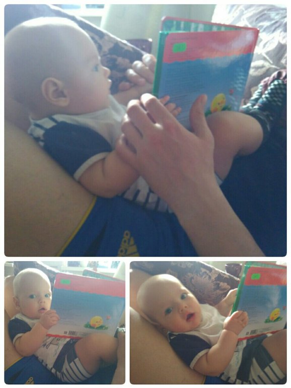 Ещё купила я сынуле музыкальную книжку, оценил барин!) Сначала читаю я, потом включаю саму запись на книжке и отдаю ему в ручки)