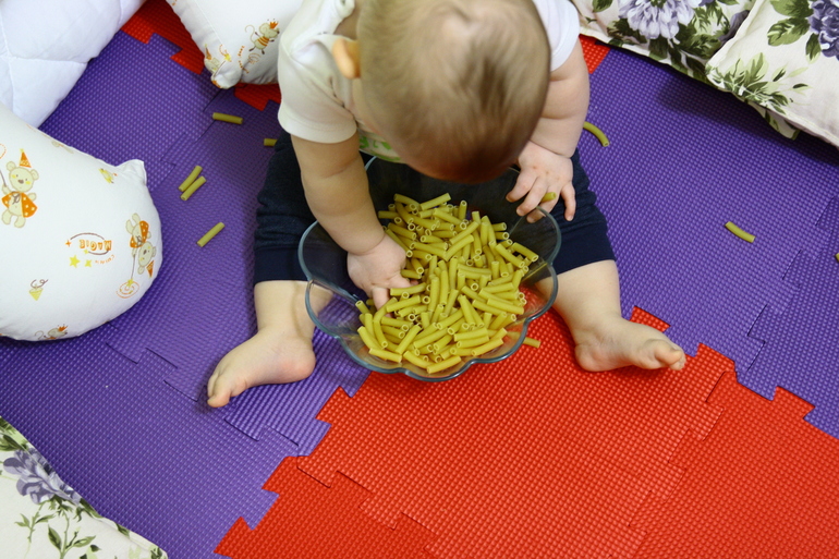 Сидеть на одном месте и копошиться с игрушками уже не любим. Вернее может, но под присмотром, а то выйдя на минуту из комнаты и вернувшись, увидела как дополз до комода и при мне открыл ящик ) Уже не могу оставить одного. Если только в кроватке на минуту пока в туалет бегаю. Сегодня возила за собой в стульчике для кормления по всей квартире пока пылесосила и мыла пол )