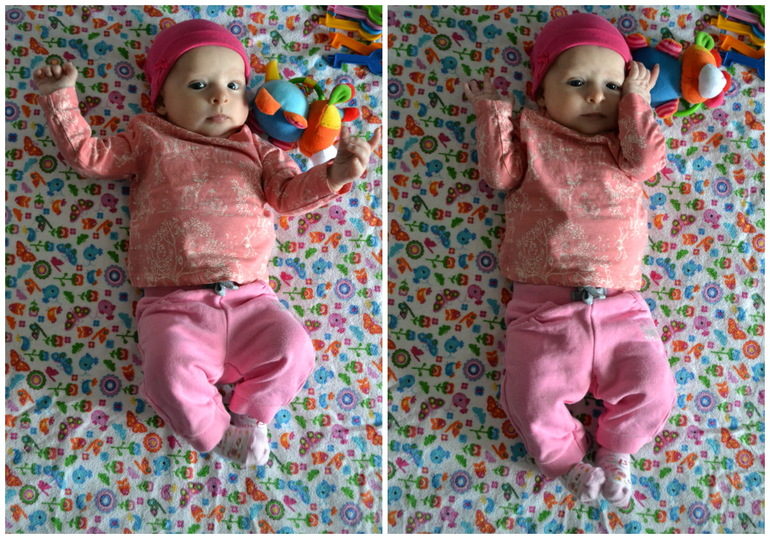 И очень активная,ух,думаю,когда ползать начнет,то ее вообще нереально поймать будет.