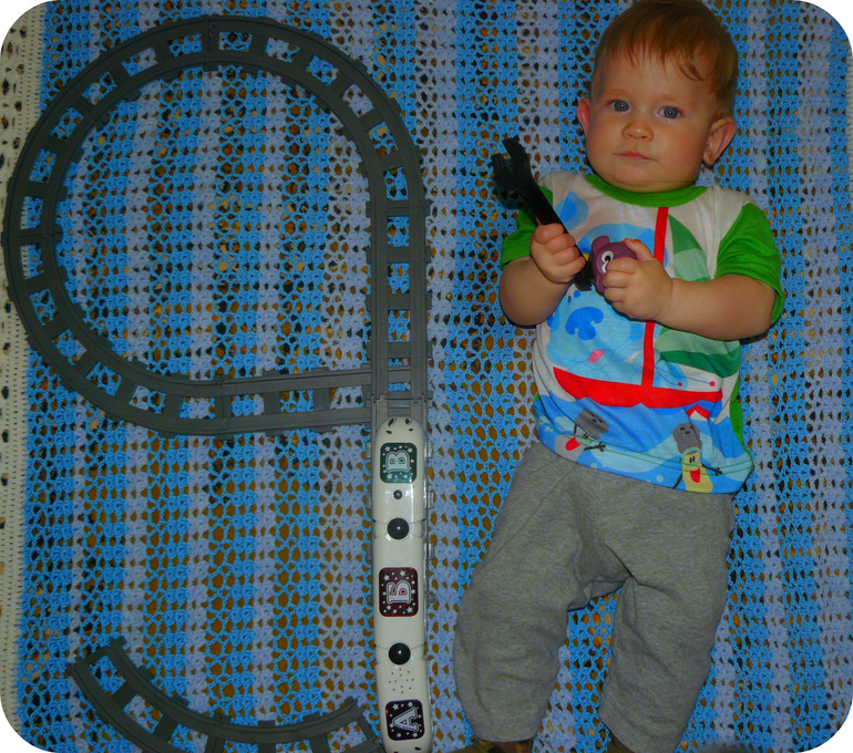 В этом месяца Данюшка опять меня порадовал-прибавка 1,2 кг!!! Весим теперь 9800, и выросли на 3см, теперь 73см.Конечно же кушаем хорошо, особенно любит молочку(творожки, кефирчик), овощные пюрехи, супчики с мяском, только каши не очень, а ну и мамку конечно)