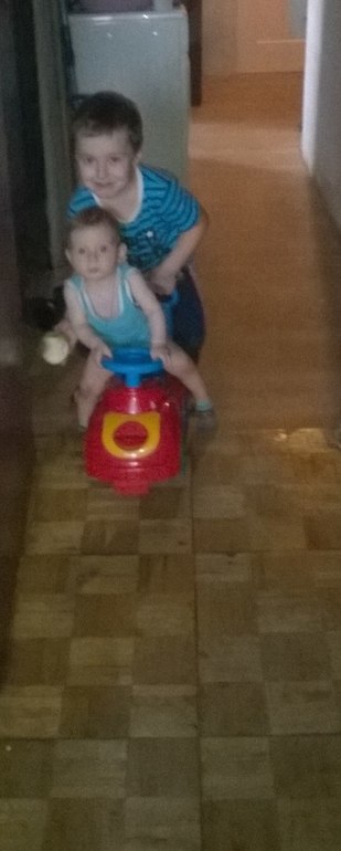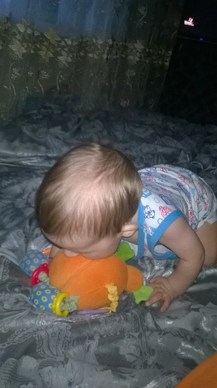 ХвастаемсяЕщё один месяц пролетел и кажется, что следующий наступает быстрее предыдущего. Ростовес 70/7500. Что умеем: Пьёт из кружки, правда из маминых рук, но уже не обливаясь. Наконец то стал сидеть спокойно и интересоваться игрушками и перебирать пальчиками мелкие предметы. Ложится на животик из положения сидя, как хищник на охоте пасущий добычу, так прикольно)). Начался "мамский" период и теперь за мамой всюду следует орущее и вообще самое несчастное, брошенное существо (это если взглянуть в его глазки). Ещё бывает что когда он меня зовёт, я поворачиваюсь и крошечка моя кидается ко мне с такой любовью и радостью в глазках, что я готова бросить все дела и таскать его целый день на руках). Меняется режим, пока ничего не понятно, но ночью "бидончики" каждый час должны быть предоставлены), и спать после четырёх часов утра предпочитает только между родителями). Зубов нет, но есть два маленьких бугорка внизу, ждём-с. Пытается стоять не держась за опору. Начали кушать мяско, кролик на ура, индейка демонстративно выплёвывается). Машет бабушке "пока-пока" слабенько, но осознанно)), ладушки вообще перестали быть интересными. Ещё из всех песенок что пою есть две любимые, когда их слышит-улыбка до ушей и ножки ходуном)). По квартире перемещается ползком, на ножках держась за что то, иногда двоюродный братик катает на машинке)) Ещё мы покрестились, орал так что стены сотрясались! Во взгляде появилось что то новое, как будто многое стал понимать. Какие то события ещё произошли за этот месяц, но вспомнила пока только это). А это мой светлячок и мы с ним желаем всем прочитавшим бобра и много умелок!!))