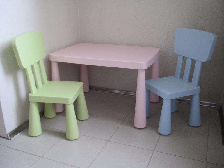 Я за икеевский стол. У нас не икея, но тоже просто яркие стол и стул. К слову о сроке службы - у подруги дочь в этом году в первый класс идет, и вот они только сейчас меняют ей икеевские стол и стул на полноценный стол для учебы!