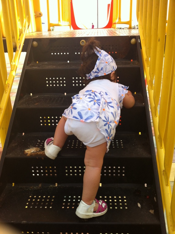 Любит детские плошадки , но она там ползает ... Грязную домой приношу ;) любит лестницы до безумия и помощь моя не нужна , горки ;)