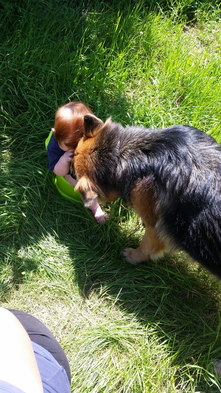 Вообще ему очень нравится в деревне. Наверное свежий воздух, много разной живности, дает о себе знать и он как-то более стремительно начал обучаться чему-то новому. Ну и фото конечно
