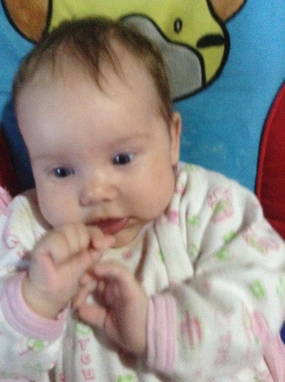 Любим разглядывать собственные руки, глаза пи этом конечно в кучу))))) сегодня ездили к ортопеду и неврологу. У невролога вопросов к нам нет, велено только гимнастику делать!!!! А вот от ортопеда вышли с диагнозом дисплащия левого т/б сустава в легкой степени))))) ну и тоже гимнастика, электрофорез, массаж!!!!! На живот переворачиваться не хотим даже с моей помощью!!!! Спать хотим только у мамы на ручках. Молока маловато, поэтому начала потихоньку вводить прикорм: попробовали уже яблочко и грушу, чернослив ( чтобы какала лучше)) и пшеничную кашку на молоке. Все переносим хорошо. Еще устала я бороться со своей принцессой и теперь мы гуляем в прогулке, у нас гамачок))))) любим поглазеть теперь на прогулке, а раньше любили поорать))))