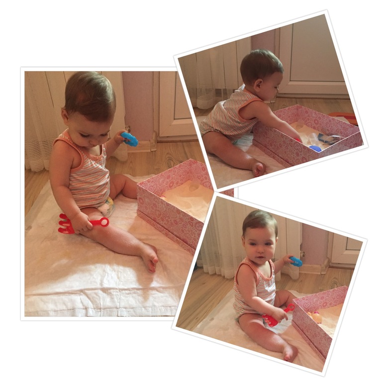Так как вчера на улице весь день ливень,мы устроили импровизированную песочницу дома))))и спокоооойствие))ну по крайней мере на 20 минут))