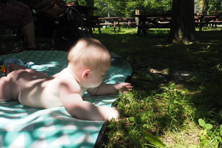 Пока Кай спал - ходили с ним в коляске, когда просыпался, выкладывали на животик на травку и кушали. Каю ну очень понравилась местная трава=) Отобрать было нереально. Это единственное что отвлекало его от вилки. Но об этом отдельный пункт дальше будет)