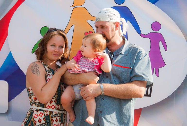Приняли участие в мероприятии "Семейный марш 2016", это было весело и интересно. Там же Полина познакомилась с фонтанами - снова водичка)) и начала ходить босиком по траве.