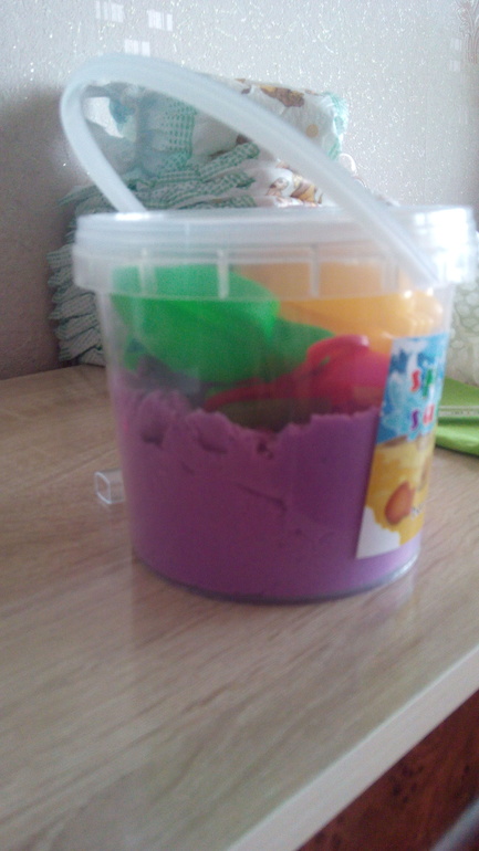 ИгрыДочке почти 11 месяцев. Так как песочницы в нашем районе нет, решила купить такой песок с формочками. Выложила его, показывала дочке как куличики можно делать, мяла песок, дала дочке в руки. Она сразу в рот. Попытка попробовать была, естественно, мною сразу же пресечена. Дочкп развернулась и уползла. Все! Больше песок не был интересен. Теперь жалею, что купила (700 руб). Лучше б пляжа песок набрала и водой бы поливала. Такой песком дочка хоть в ручки брала.