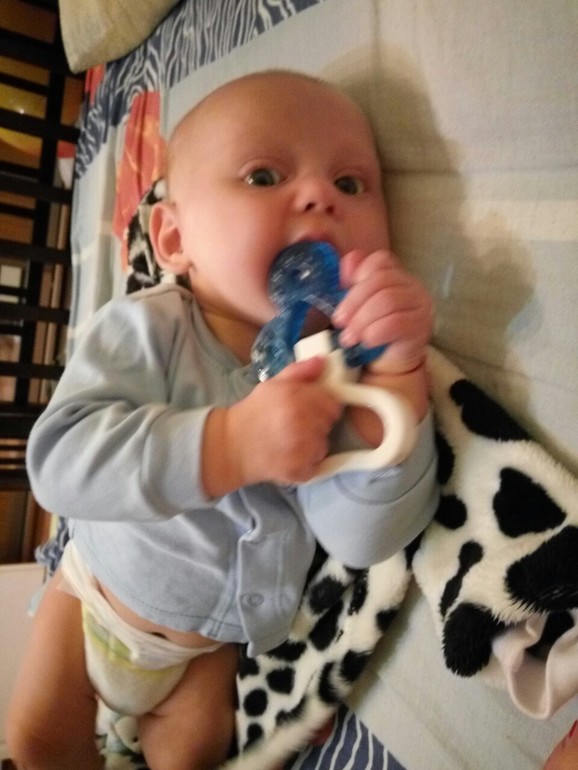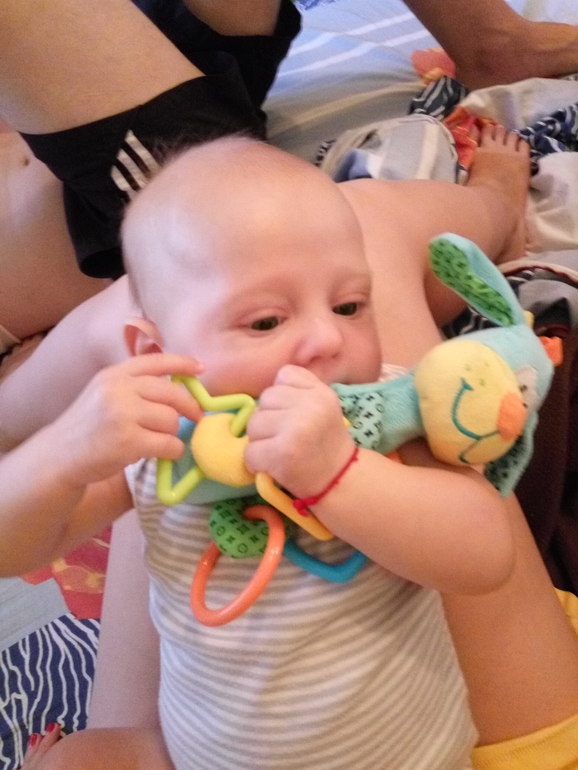 Улыбчивый парень какой! Растите здоровыми и счастливыми. Мы ваши ровесники, только игрушки и прорезыватели не интересуют пока((( только мама, только кулаки)))