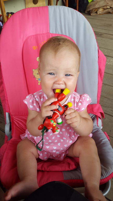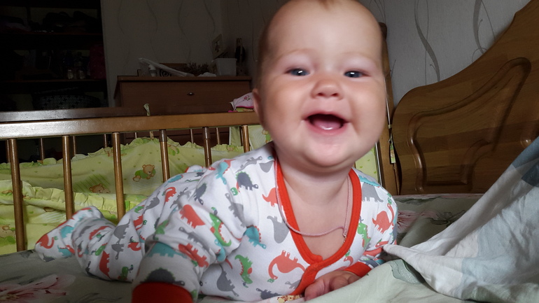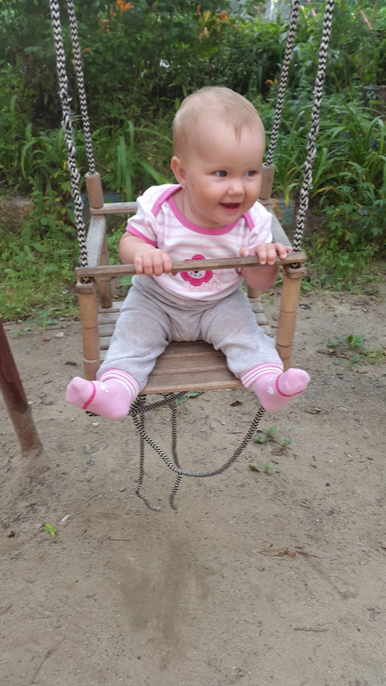 Любит кататься на качелях. Гуляем 2 раза в день. Все грызет-зубы только пытаются снизу пробиться, но пока мы беззубые. Говорилка -то татата получается, то дададай, папапап иногда выходит , да и маам, иии на всех животных дома (кот и пес). Тем людям которых видит часто и знает-улыбается. Иногда на незнакомых плачет и прячется за меня, но стоит с незнакомым постоять пару минут -и им лыбится😉 учимся играть в ладушки и махать пока. Любит жевать бумажки, а бросают братья в своей комнате только их, упорно ползает к ним , проверяет😂 . Любит купаться на море😎 ладошками стучит по воде и смеется.