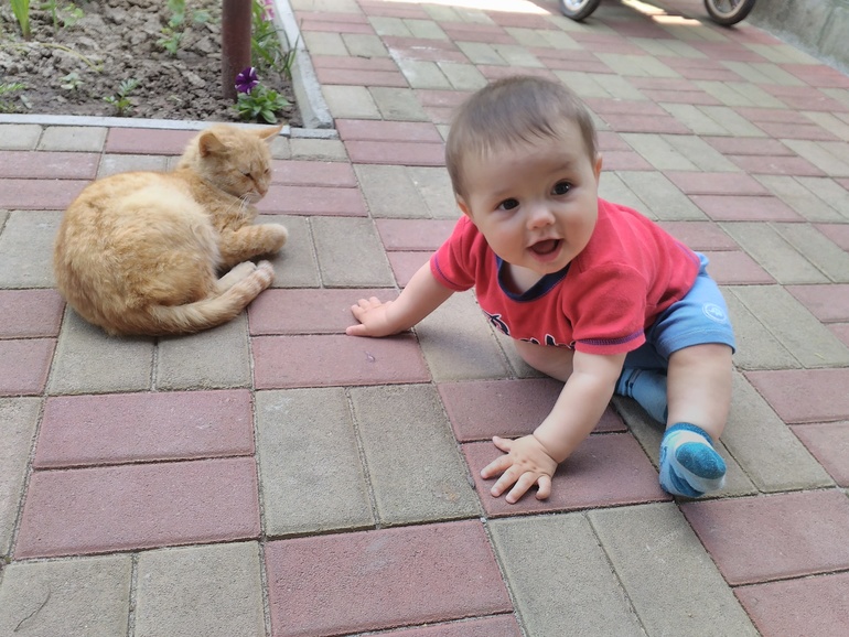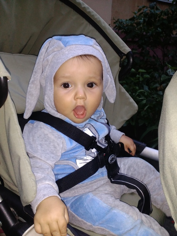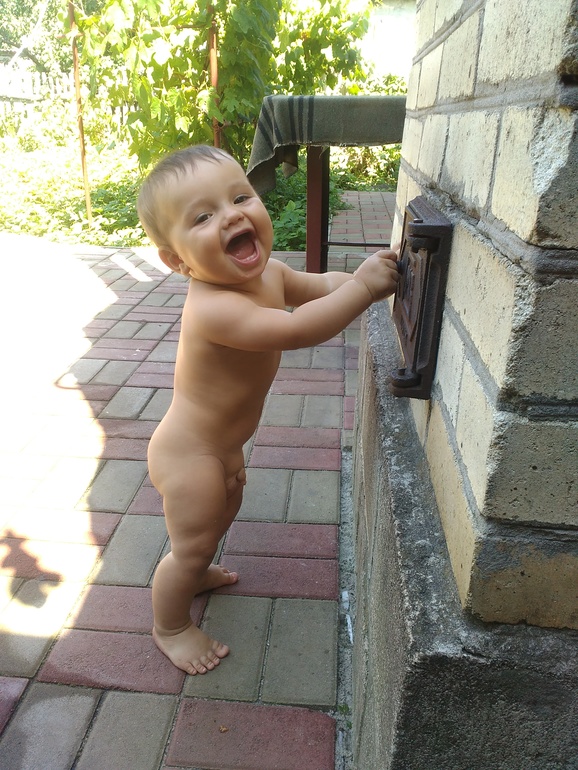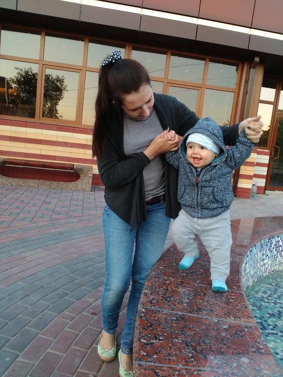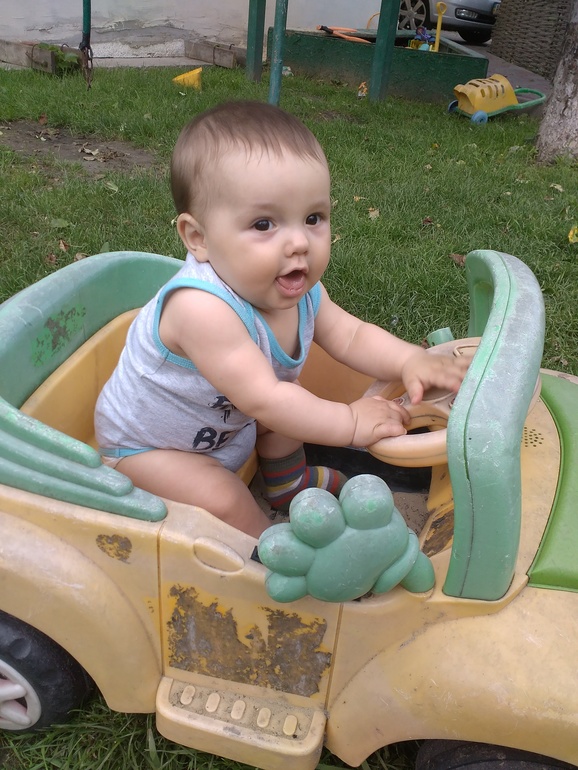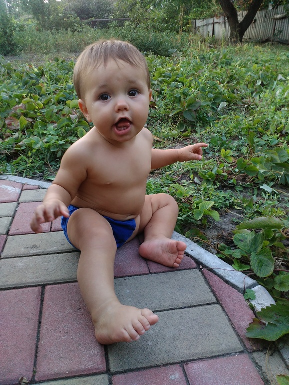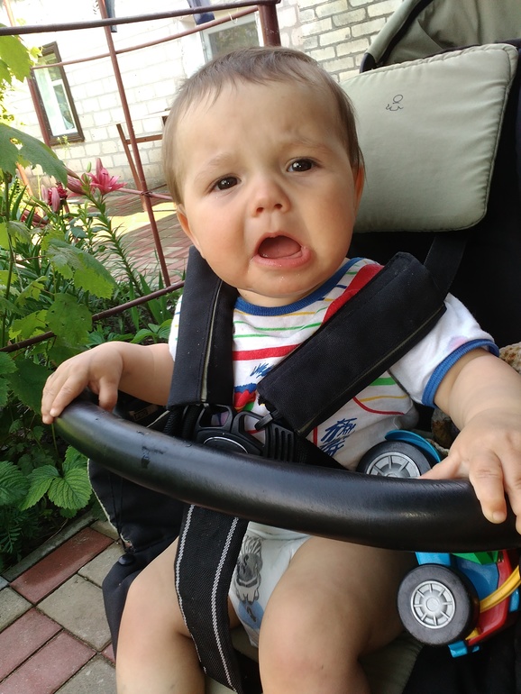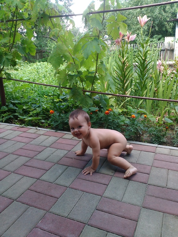 Топает за ручки и даже за одну,делает 1-2 шажочка,встает сам и садится обратно.Ползать может и "раком",т.к.,когда были у бабушки,там во дворе плитка, и ему давило в коленки,так он нашел выход из положения). Зубов у нас 2 :нижние(вылезли в 8 мес и 21 день и 8 мес и 27 дней),верхние ждем вот уже 2 мес,мучают нас обоих...вроде бы вот-вот будут..