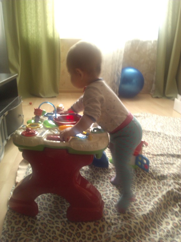 Мой танцевать под музон любит. А еще лего мое спасение. Я что нибудь собираю, а малой рядом копошится.