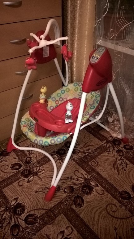 У нас грако со съёмным шезлонгом! Начала ложить дочь в 1 мес, постепенно приучая к качельке. Столик сняла полностью и положила толстую пеленку. Сначала доча плакала,не хотела в ней лежать, но потом полюбила! Сейчас и глажу, и кушать готовлю... Минут 40 сидит спокойно! Даже кушаем всей семьёй сейчас вместе )))) это счастье для меня 😄