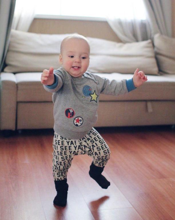- Ну и главное достижение - ходьба!!! Первые свои шаги он сделал еще за неделю до 10 месяцев, но почти месяц боялся, больше 4 не делал. А буквально 31 декабря прорвало. И сейчас я даже сомневаюсь что больше - ползает или ходит. Конечно, еще пошатываясь и падая, но уже может пройти всю комнату, научился вставить сам с пола, крутиться на месте, ему это все так нравится и увлекает, ходит и прям довольный, если на это обращают внимание. Я смотрю и не верю, что МОЙ СЫН САМ СЕЙЧАС ПОШЕЛ ИЗ КУХНИ В КОМНАТУ, да еще и унес с собой собачью игрушку)))