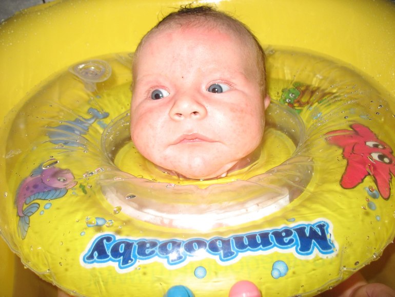 ► Любит купаться с кругом. Правда когда сил мало зависает просто в воде, релаксирует, а когда сил много, крутится, как сумасшедший вокруг своей оси, пытается ходить по дну.