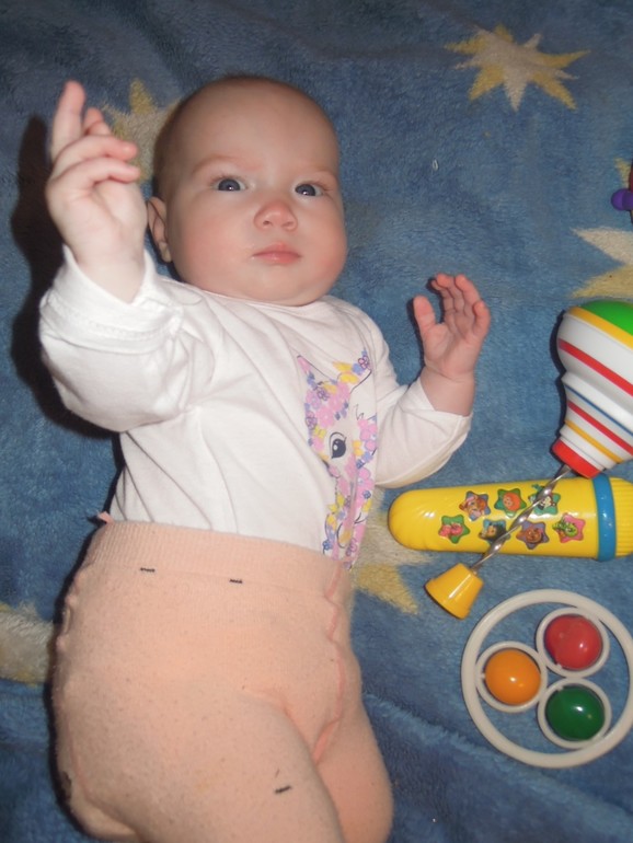 - Умеет переворачиваться с обоих бочков на живот, взаимодействовать с игрушками и пока все) Ждем четвереньки и попытки сидеть.