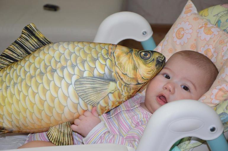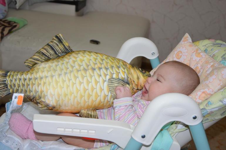 Подушка-мнушка-антистресс. В ней наполнитель шарики такие маленькие. Шарики и в плавниках и в хвосте есть, доча грызет их. А вообще сын рыбак, сыну дарила))