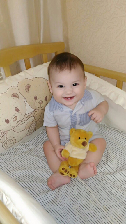 Еще Рустам сегодня сел сам. До этого присаживала ненадолго. Сидит уверенно, хорошо, на бок не валится. Поактивнее Раиля малыш…. Все старается за старшим братиком успеть. За ним все тянется. В 5.5 месяцев начались попытки ползать и вот в 6 мес уже хорошо ползает, когда ему что-то надо. НА ДИВАНЕ ОСТАВЛЯТЬ ЭТОГО ЖУЧКА ТОЧНО УЖЕ ОПАСНО. Еще он очень улыбчивый, всегда улыбается в ответ. Любит, когда приходит бабушка с дедушкой, ну и просто гости. Отличает своих от чужих. Не плачет, но начинает во все стороны смотреть и маму искать, не улыбается чужому.
