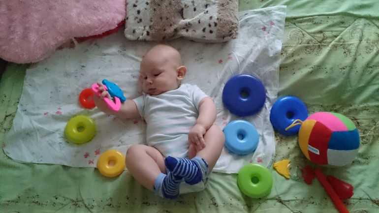 - Купаемся теперь сидя в маленькой ванночке и играем с игрухами.