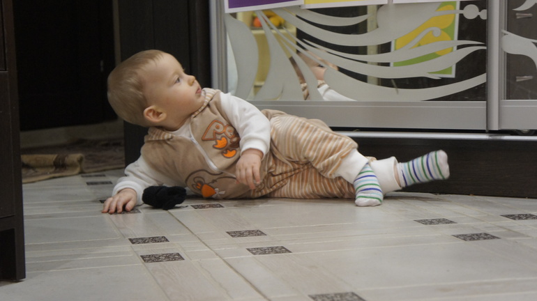 1 марта одновременно и сел и встал. Сейчас встает около всего. Особенно любит тумбу с телевизором, особенно тыкать в экран пальцами. Еще нас очень интересуют розетки. Благо купили заглушки.