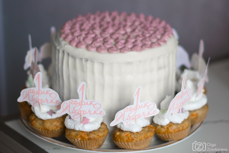 Вокруг торта - капкейки морковные, можно было пропустить, с учетом размеров торта.