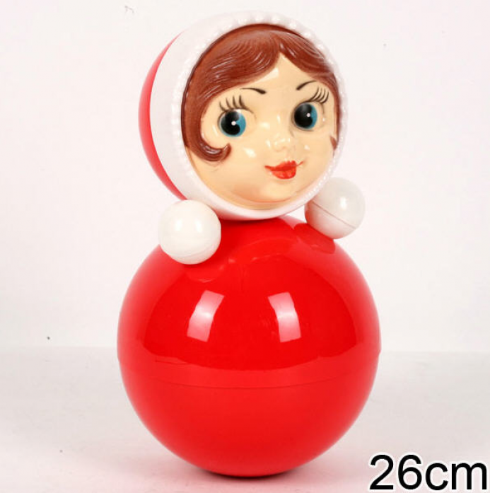 Неваляшка классическая, Котовск. "Ка-ка-ка" - это у нас "куколка". Очень и очень понравилась. Одна беда, наравне с катанием и кормлением куколке Лиде нравится бросать её о пол, вызывая звук колокольчика. Как не уговариваем, бросает все равно. Итог: на неваляшке десяток трещин, и скоро она развалится, увы.