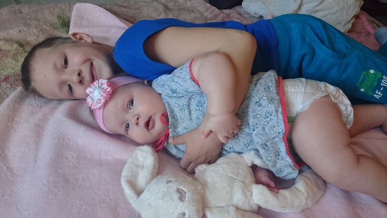 Совсем забыла написать про 5 месяцев. Итого вес был в 5 месяцев 8,300 рост 66 см. Назначил нам невролог массаж и физио. Ждём когда позвонят. Все говорят большеват родничек увеличили до 3 х капель. Что из умелок писать да же не знаю. Стола бояться незнакомых людей, кого мало знает на руках плачит сразу. Есть любимые игрушки. Любит свои ноги) смеётся и любит смотреть на себя в зеркале. Обожает брата, это у них взаимная любовь. Прикорм едим, но маленькие порции ( каша на воде и цветная капуста) . И не много фото)