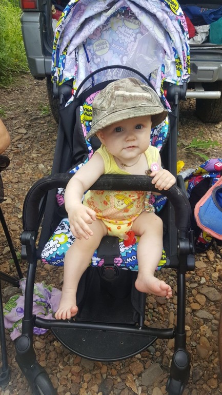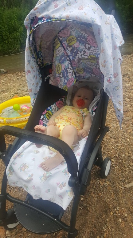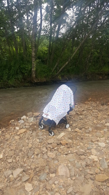Тут Полинка спала пош шум речки, мы решили сфоткать и получилось вот такое необычное свечение вокруг коляски