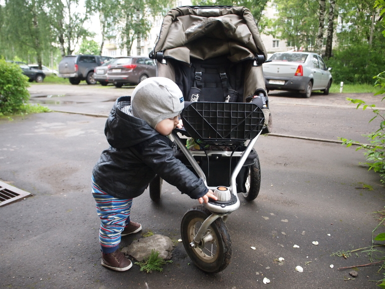 Почти все время гуляет с Лёней его прабабушка - с Лёниного месяца и до сих пор каждый день :) А тут вчера я вышла с ними - и Лёня ни в какую сидеть в коляске не хотел. Вот с бабушкой гуляет спокойно: и поспит, и поболтает с ней, и кошек поразглядывает; а как меня увидит - сразу на ручки просится.