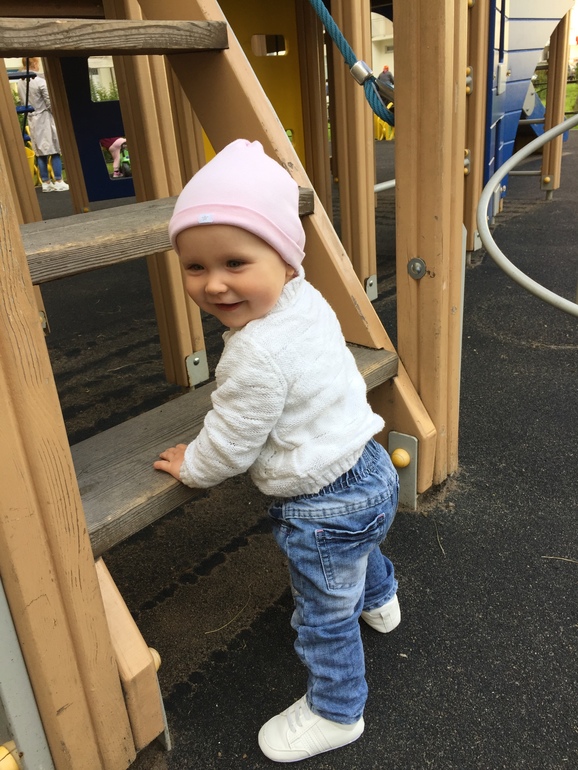 Пытаемся ходить сами . Ручки отпускает и делает 3-5 шагов . Потом правда падает . Уже гуляем на детской площадке , за одну ручку . Ей интересно! Танцевать обожает . Стоит включить музыку - все , попой крутит, ручкой вертит . В лифте , на площадке, в ванной - дайте бит !!!!!)))