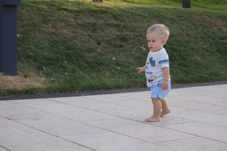 Любимое занятие дома лазить на диван и обратно, разбрасывать игрушки, кидать с высоты и смотреть куда упало, ну и конечно, детская площадка -это наше все, любит носиться там, катать все подряд, знакомиться с другими детками.
