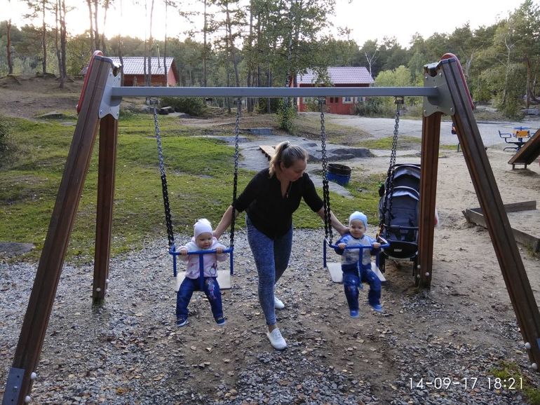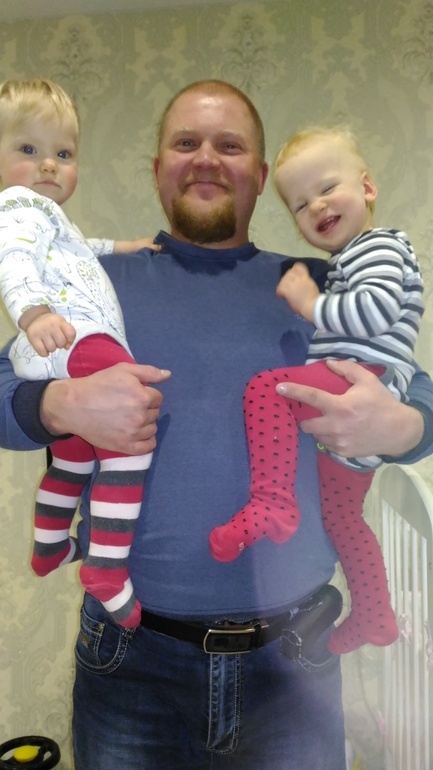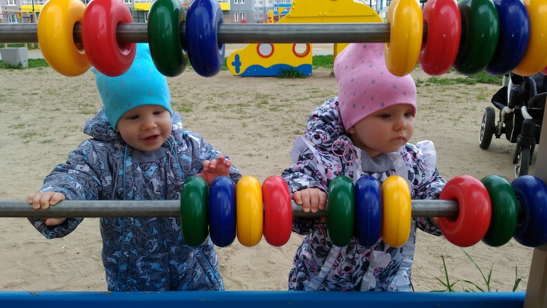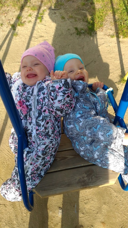 Маруся раньше Максика начала болтать, садиться и ползать, говорит все тоже, что и Макс, но когда плачет проговаривает "Айяйяйяйяй"))) и научилась говорить "Папа". Наконец-то наш папа осознал себя папой. Нет , не по тому, что Машута сказала "Папа", а потому, что дети ему очень рады. Когда папа приходит с работы, то малышня бросают свои игрухи и ползут в прихожую с каким-то азартом, визгом и смехом к любимому папе. Мой муж самый лучший. И ему не надо тыкать и говорить - Купи малышам вкусняшек, или дома нет молока, он сам за всем этим следит. И если мне вздумалось приготовить что нибудь "этокое")),то все продукты есть в наличае. Помогает купать детей, укладывает спать, кормит, Это все мы делаем вместе. Как бы сообща. Мне так приятно посмотреть, когда он с малышами балуется)))То вертит их, то щекотит и дети визжат от удовольствия. А когда они лезут обниматься, прикладываются своей головкой к папе или ко мне , то слезы на глазах появляются и тут я понимаю, как же сильно я их люблю. Они моя жизнь! С осенью стало больше одежды. Дети и без того не маленькие , да еще и с кучей одежки стали прям неподъемные. Даже мне, будучи при 70кг!!!тяжело их тоскать и возить в коляске. Возвратился мой Артрит(((. Скорей бы ножками пошли. Одеваться не любят до ужаса. Ненавижу этот процесс. Дабы пока одного оденешь, потом второго, пеивый уорется и я сама вся вспотевшая. Это ад какой то. Но только почуяв свежий воздух дети успокаиваются На улице, если мы гуляем , то часик могут проспать, остальное время надо с ними топтаться , либо на качельках, с которых если мы уходим, то только со слезами, либо держа за ручки. Короче прощай моя поясница. Вот пока все наши новости. Всех люблю. Ваша Татка)))