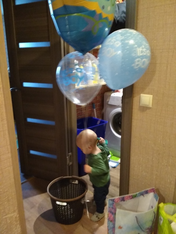 заказала шарики с Али экспресса..Очень ими осталась довольна,потерялась посылка с единичкой надувной,ну сами виноваты,вовремя не спохватились,но и без нее было замечательно.Ещё не успел прийти заказ с фото,опоздал буквально на два часа,но мы уже уехали,ждать не стали,т.к. точного времени никто нам не обещал..Мы с мужем,а точнее в основном муж,смонтировал видео за первый год жизни Влада ,получилось на час с лишним,наложили веселую музыку,смотрели с удовольствием и сами!!Если захотите такое повторить,не делайте моих ошибок,снимайте видео горизонтально (иначе потом при вертикальных видео треть экрана будет черной))).. какие-то видео забыл добавить,не проконтролировала,но все равно было очень здорово.А так,ели ,пили,веселились!!!Влад бегал ,радовался шарикам, очень они ему понравились,носил везде с собой их)Испекли ему простой пирог маленький с яблоками и без сахара,дедушка пек,точный рецепт не знаю,но могу спросить,если кому надо)В общем веселился,танцевал...Но конечно взрослые у нас очень активные,не дали ребенку второй раз поспать,а я упустила,его увели,я думала спать,а нет играть...В общем считаю тут надо быть настороже...уснул в целом нормально.Ну и немного фоточек как обычно.