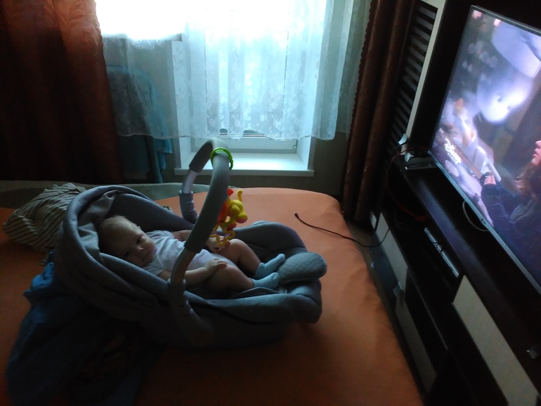 Рост, весВесим мы уже 5700 кг, за месяц набрали 1200 кг, рост 58,5 см, выросли на 2,5 см. Сына растет богатырем, естественно, постоянно на сисе. Любит смотреть телевизор, это папа приучил. Улыбается и смеется , когда с ним начинаешь общаться. В кроватке так и не спит. Но кладу в кроватке и включаю карусельку, чтобы привыкал потихоньку. Хочу купить качель, может хоть свободное время появится, так как иногда сажу в автолюльку и ставлю перед телеком, сидит какое то время, нравится сидя. Чужих людей не боится, а внимательно рассматривает. Режима так у нас и нет, последнее время капризный стал, вообще меня от себя не отпускает. Иногда ночью поесть и начинает баловаться грудью, я её забирают и сын как то сам засыпает, было так несколько раз. Соски и бутылки не признаёт, на руках не сидит, ещё бы в кроватке спал и просто счастье мне было бы. Да, и стали спать с открытыми ручками, которые меня иногда выбешивают, лезут везде куда не надо. Переворачивается с одного бока на другой, хорошо головку держит, любит потигуши делать очень. В ванной перестал с кругом плавать, я руками держу голову и он барахтается. Ну вот пока все умения наши.