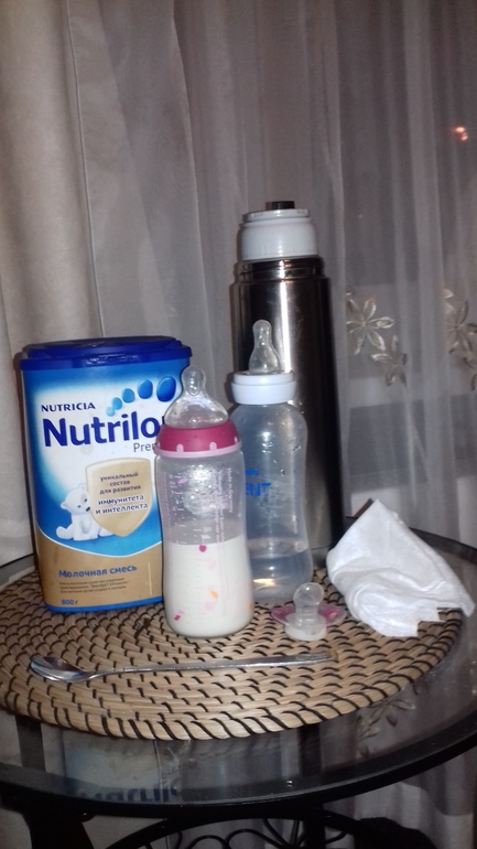 СонМы очень тщательно готовимся к ночному сну.Причин тому несколько:Веруня очень плохо спит,просыпается на "поесть"каждые 2,5-3 часа,корм надо давать сразу иначе вопли,по этому все должно быть под рукой,чтоб зарядить бутылочку.Мама Веруни сейчас восстанавливается после операции и ночи мы с внучкой проводим вдвоем,а значит действовать надо очень быстро.Вот такой у нас ночной бэби бар.В термосе вода нужной тепм.,в банке смесь,водичка для питья в одной бутылочке в другой засыпана порция смеси(на фото уже в готовом виде),остается добавить воду из термоса в бутылочку и размешать длинной ложкой и можно приступать к кормлению.Спасибо за кометы,смесь буду заранее порционировать.