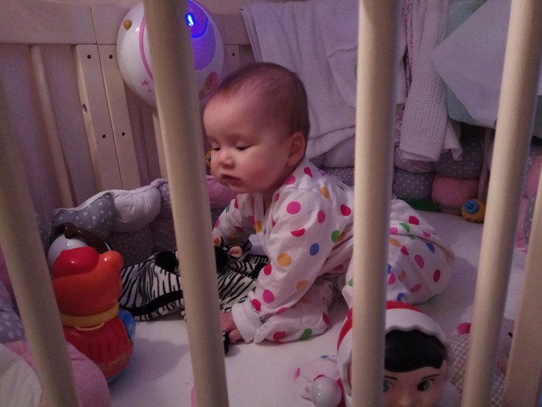 Когда сама без опоры будет сидеть с прямой спиной. Пока можно только на 45 градусов.