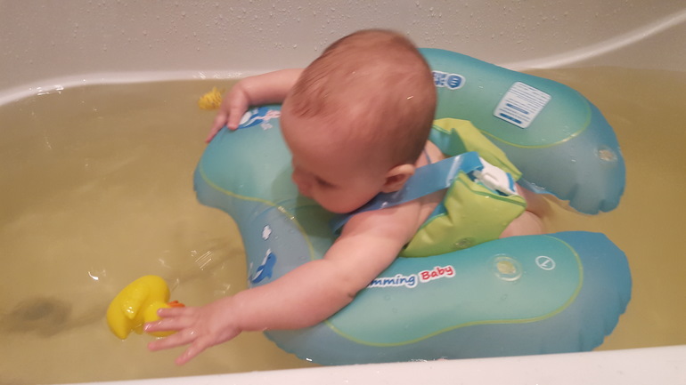 Распробовал купание в ванной. Теперь молотит руками по воде и радуется брызгам. Ну и вообще очень активно там себя ведет.