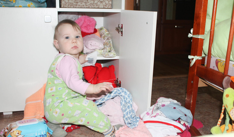 У меня половина шкафов на блокираторах, а половина просто резинками закрыла. Лезет везде и всюду оставляет порядок после себя)))