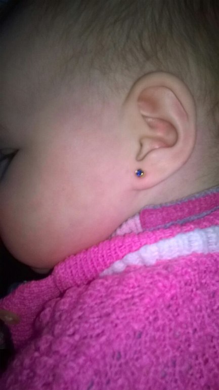 . Плакать начала, когда держать стали. Как только прокололи начала с интересом всё осматривать. Даже женщина,которая прокалывала, сказала, что уж очень Танюшка любопытная.