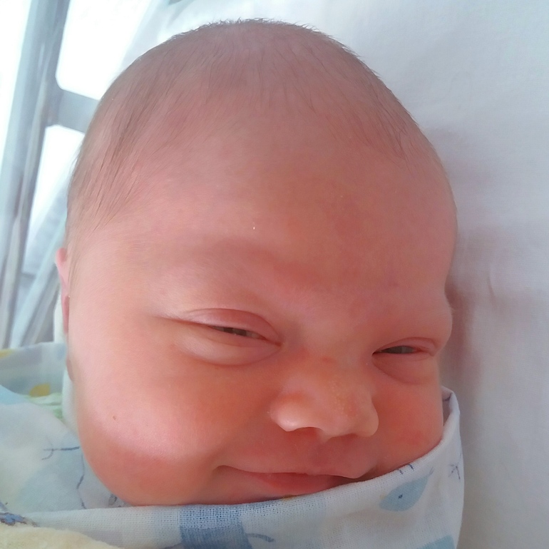 Физически сильная, на животе голову держит уверенно. Я боялась, что слишком уж уверенно, но медсестра успокоила. Вообще Валя беззащитным младенцем не выглядит, ещё бы - такой пухляш)